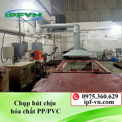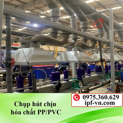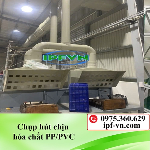 Chụp hút chịu hóa chất PP/PVC là bộ phận không thể thiếu trong 1 hệ thống xử lý khí thải. Chụp hút hơi hóa chất có tác dụng gom và thu lại khí thải sau đó được truyền tải lên hệ thống ống rồi sau đó đưa vào hệ thống xử lý khí.