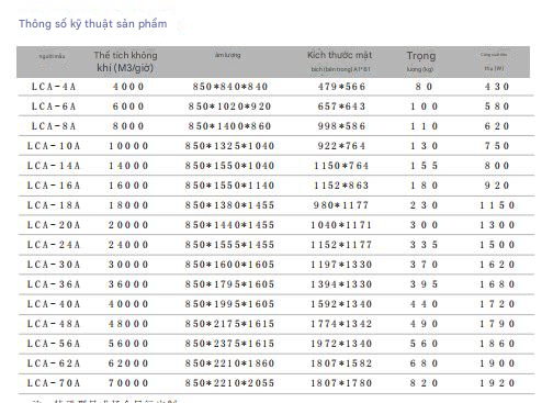 | Nhà máy > 500m² | LCA–50A đến LCA–70A |