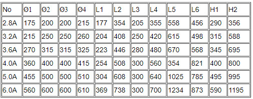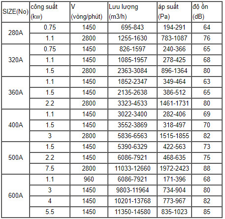 Bảng thông số kích thước quạt hút khí độc WT4-72