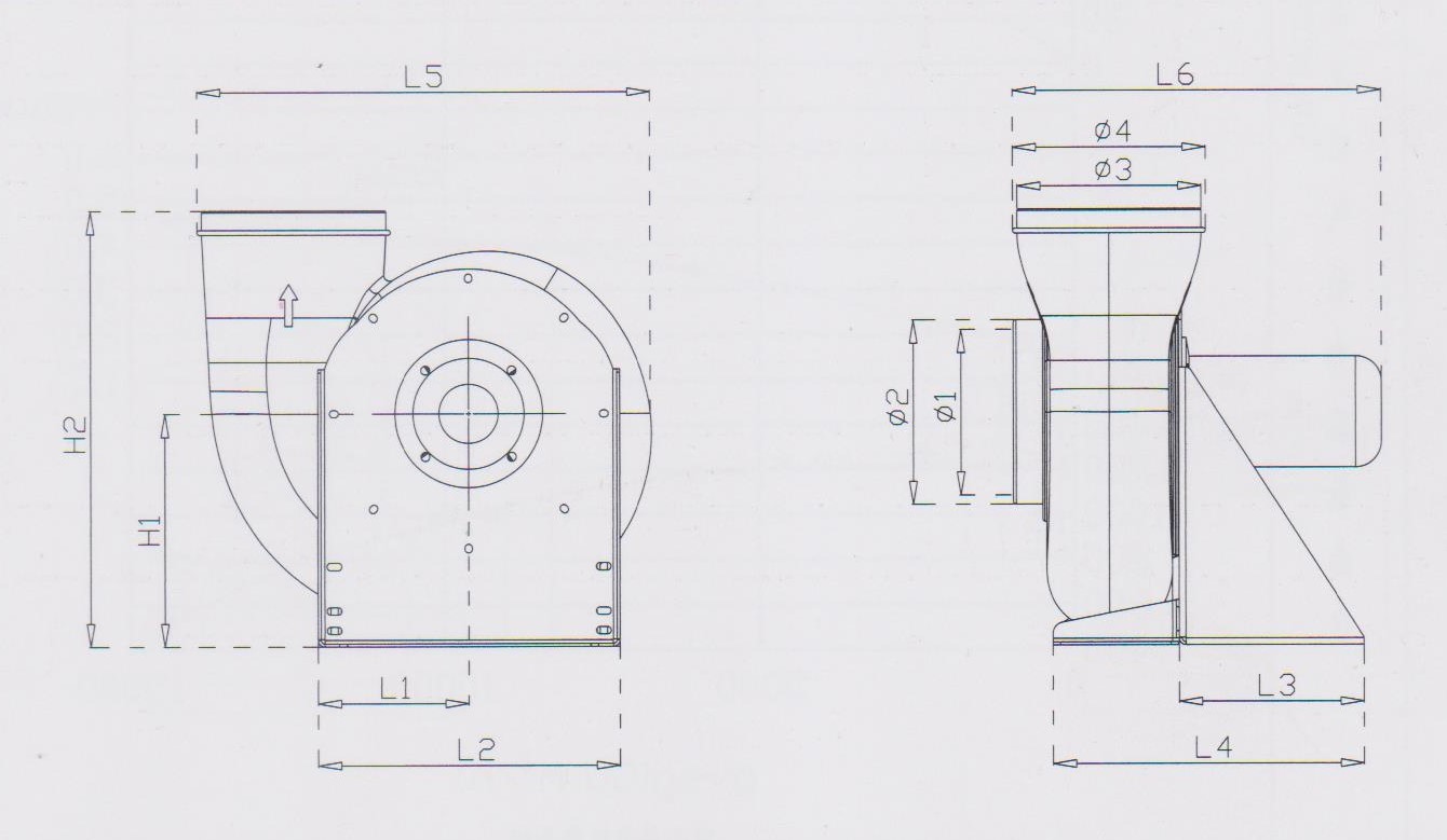 - Vỏ của quạt và guồng cánh được đúc thành một và giao diện tròn tiêu chuẩn (Ø160, Ø 200, Ø 250, Ø 300) cho đầu vào và đầu ra của quạt. -Dòng quạt này là quạt ly tâm đầu vào duy nhất có giao diện hình tròn,cánh quạt được kết nối trực tiếp với động cơ . Khách hàng có thể điều chỉnh góc đầu ra theo mục đích sử dụng của khách hàng.