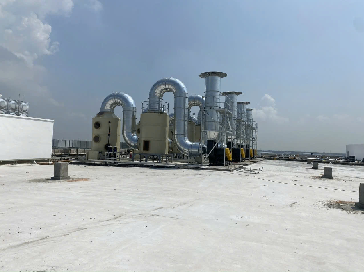 Nhà máy tại Việt Nam thường đặt scrubber ngoài trời, tiếp xúc mưa nắng liên tục → FRP là lựa chọn cực hợp lý vì tuổi thọ 10–20 năm.